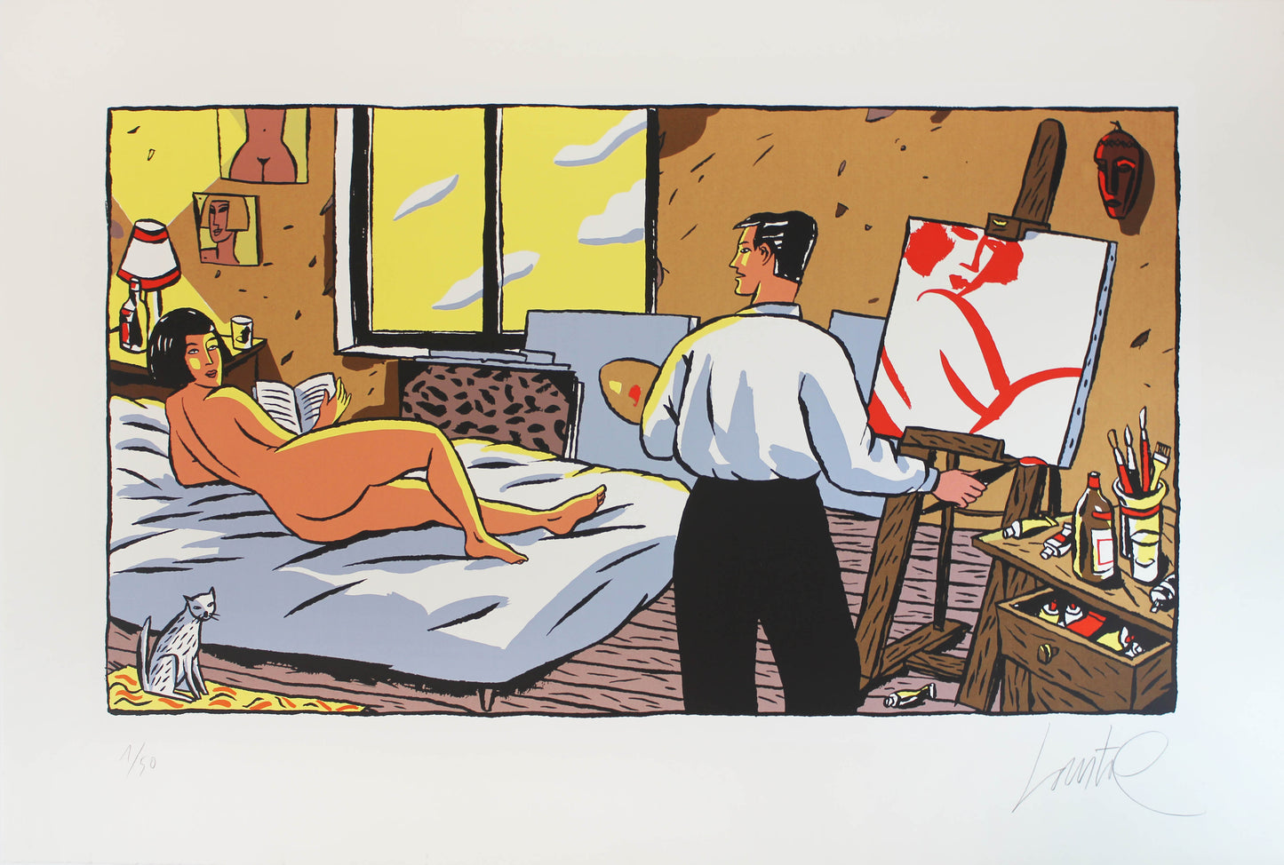 Peintre et son Modèle - Siebdruck von Jacques Loustal, #1/50, signiert von Loustal, Größe 70 x 50 cm, aus der Sammlung L