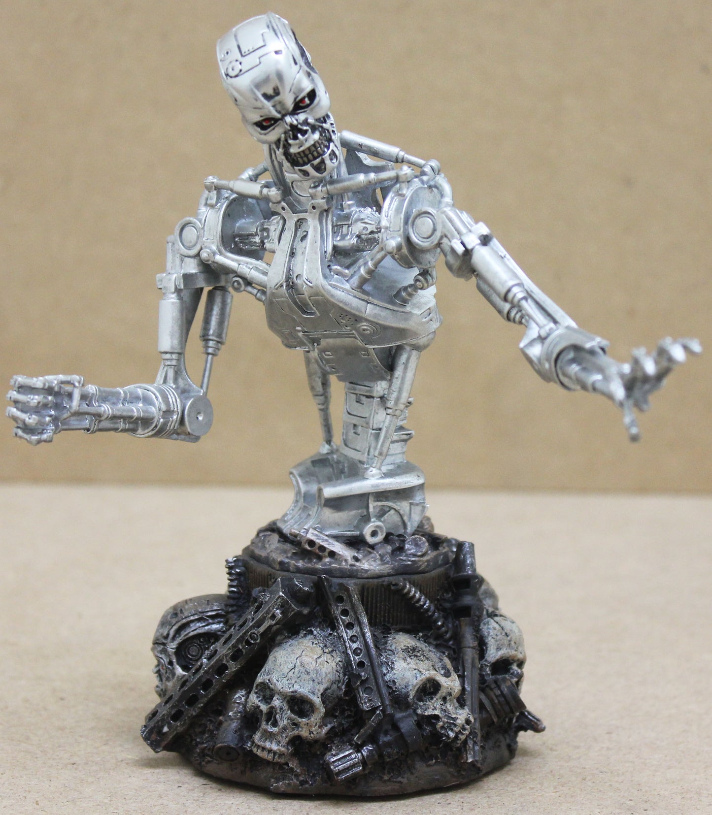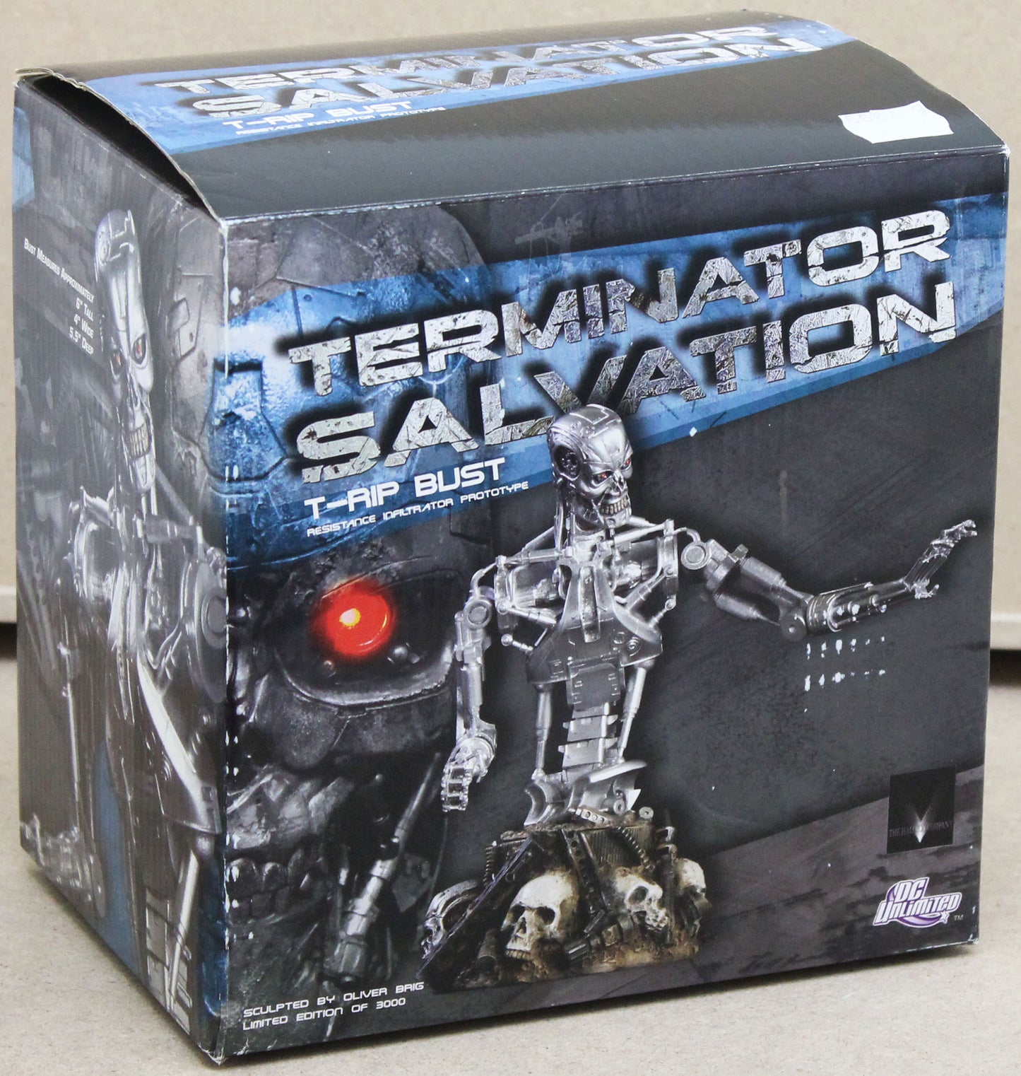 The bust is hand-painted, cold-cast in porcelain, feature a base incorporating both human and Terminator skulls and are packaged in a 4-color box.
