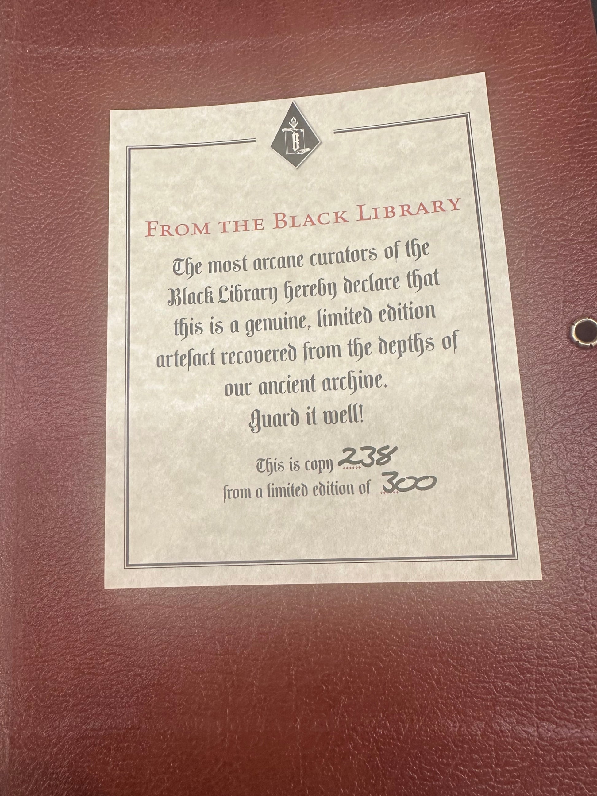 Black Library, in Kunstleder gebunden mit Siegel und Landkarte auf Stoff gedruckt (ca. 62cm X 77cm) und 4 Art-Prints